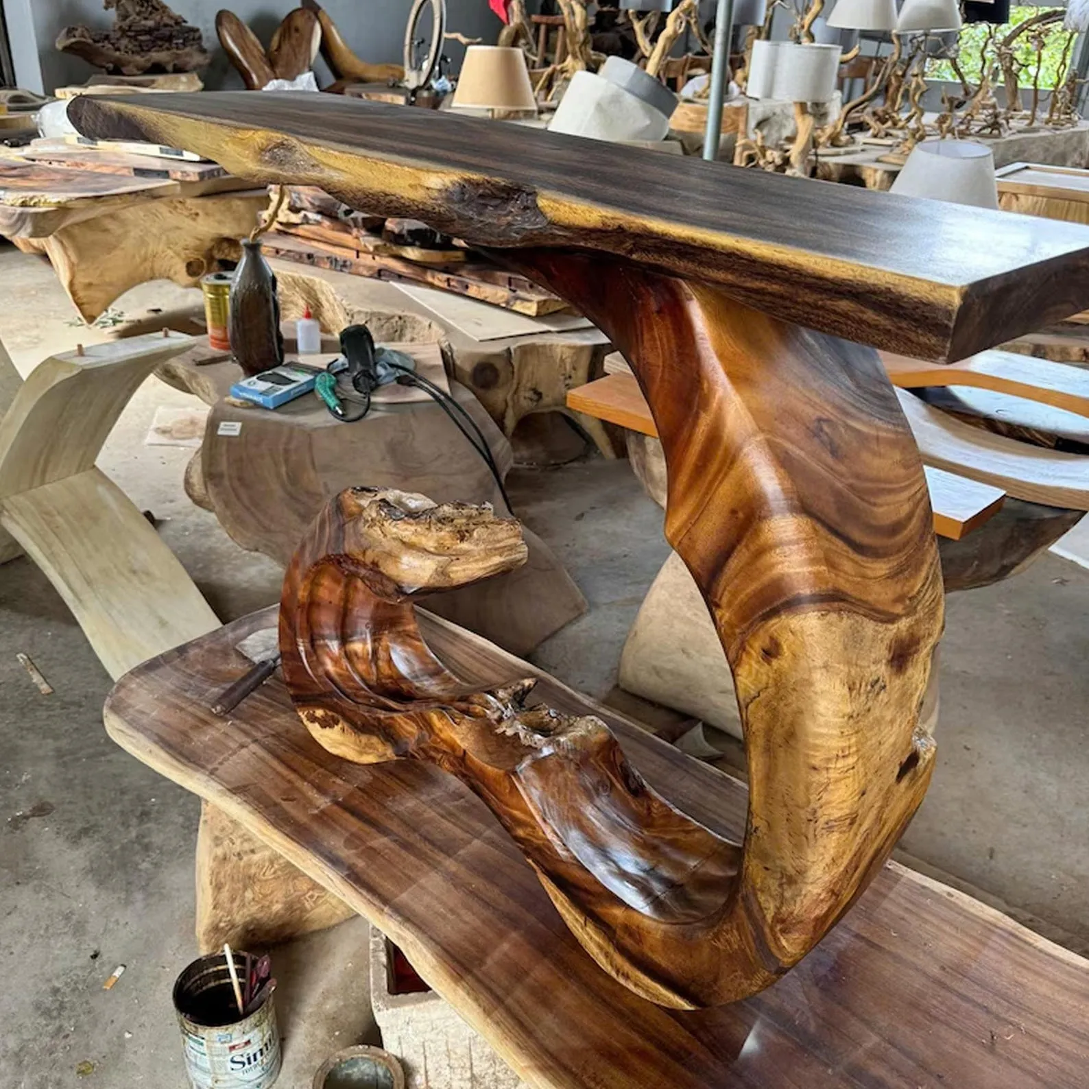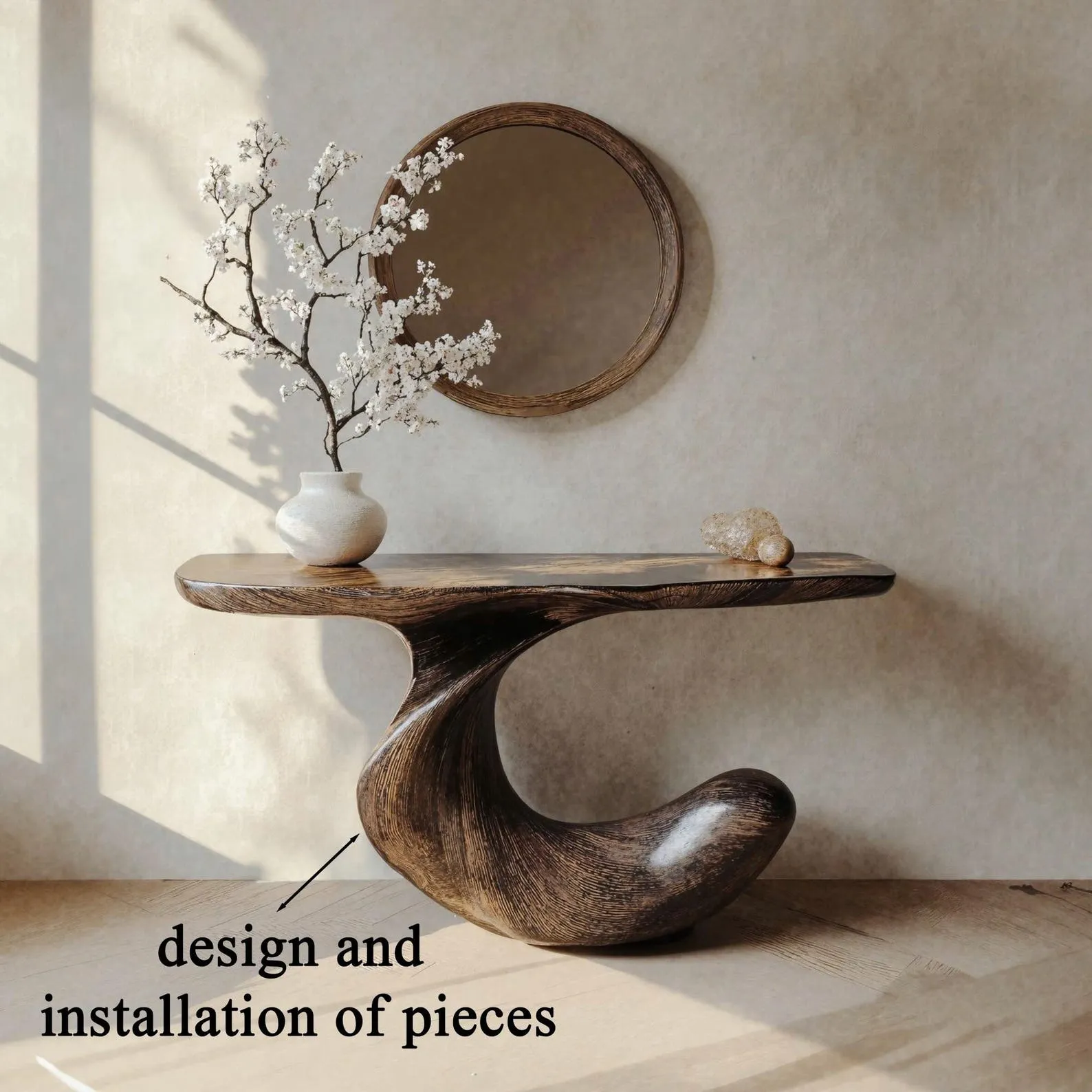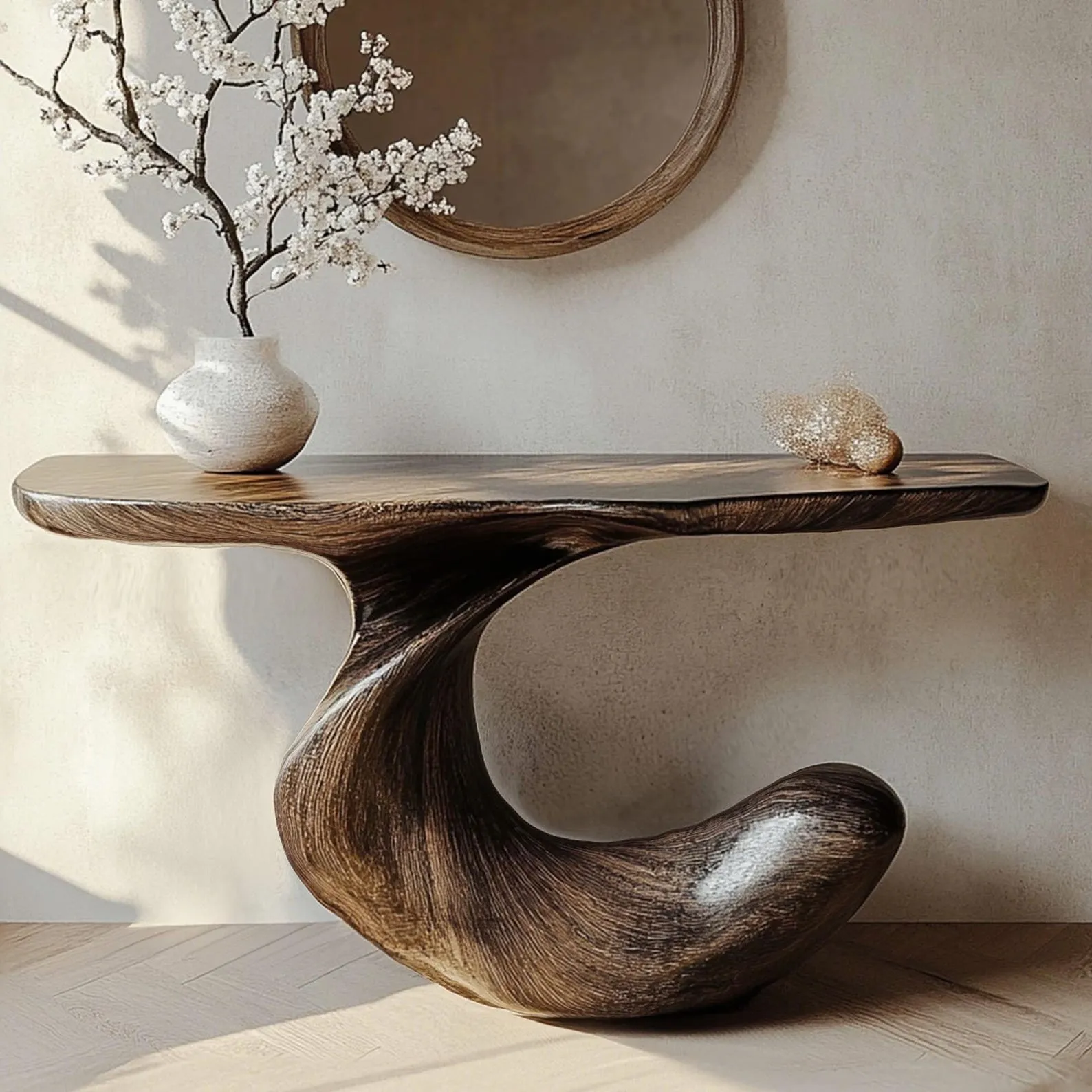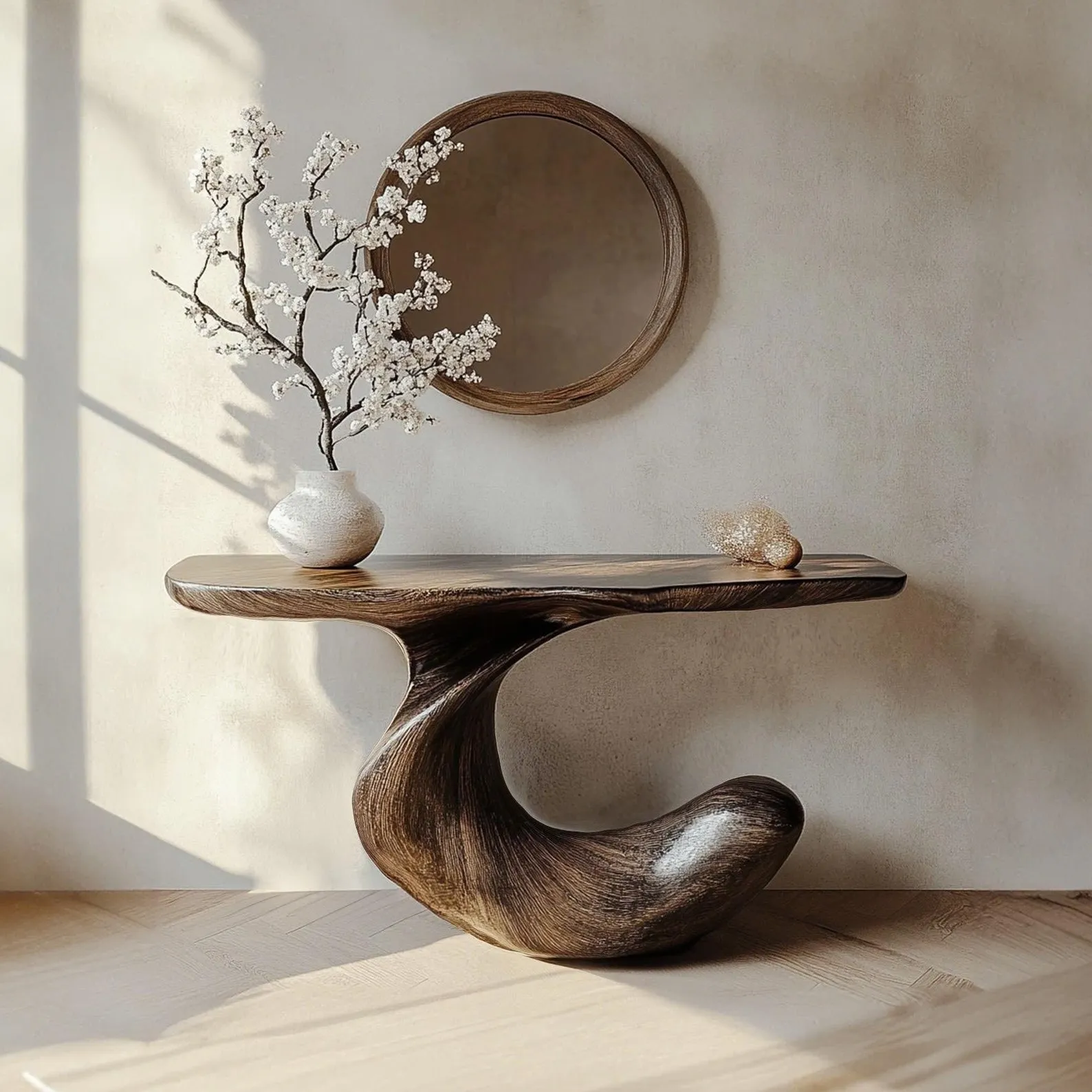 The table stands on a straightforward base engineered for indoor use on a level floor. When assembled according to the guidance on the product page and used within sensible limits, it supports typical entryway and living room accessories with ease. The handcrafted look of the wood top pairs well with woven baskets, ceramic vases and soft lighting, giving you a practical display area that still feels calm and uncluttered.